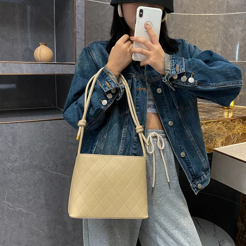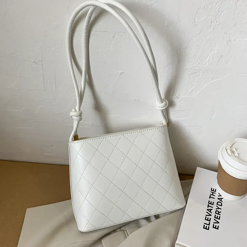 Women Fashion Basic Diamond Stitching Large Capacity Square PU Shoulder Bag