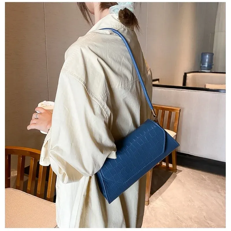 Women Fashion Flap Magnetic Buckle Design Crocodile Pattern PU Shoulder Bag