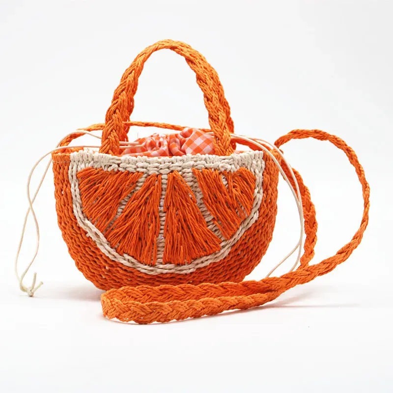 Women Fashion Simple Watermelon Orange Shape One Shoulder Handle Woven Bag