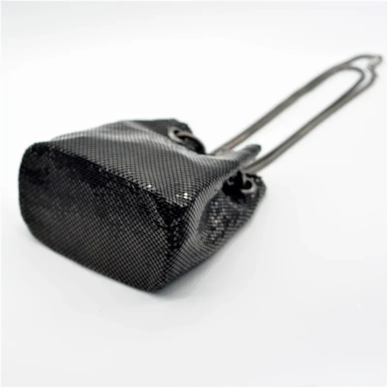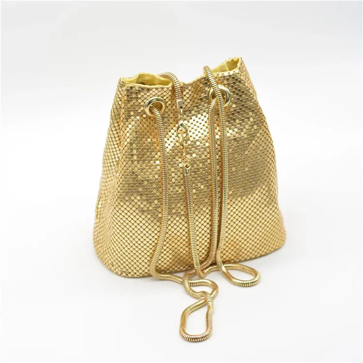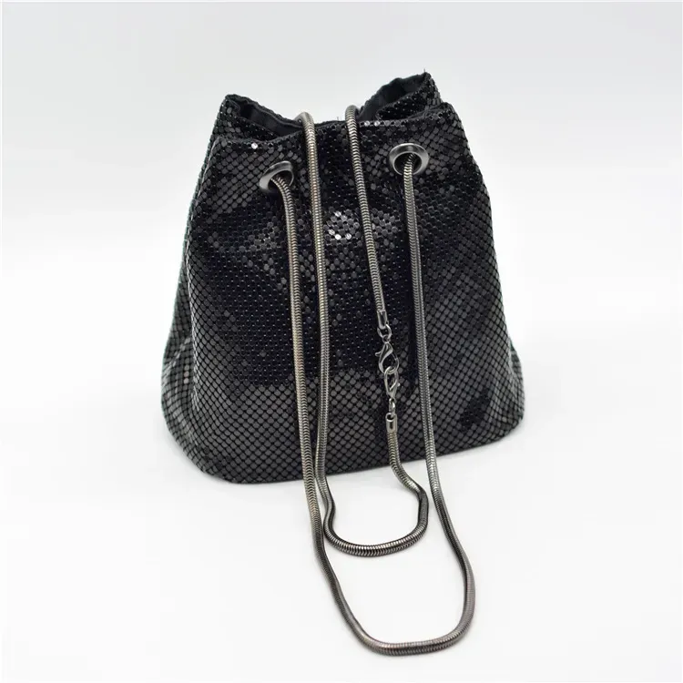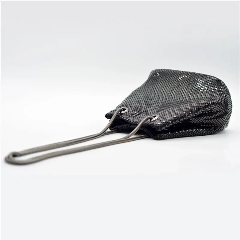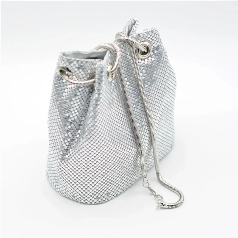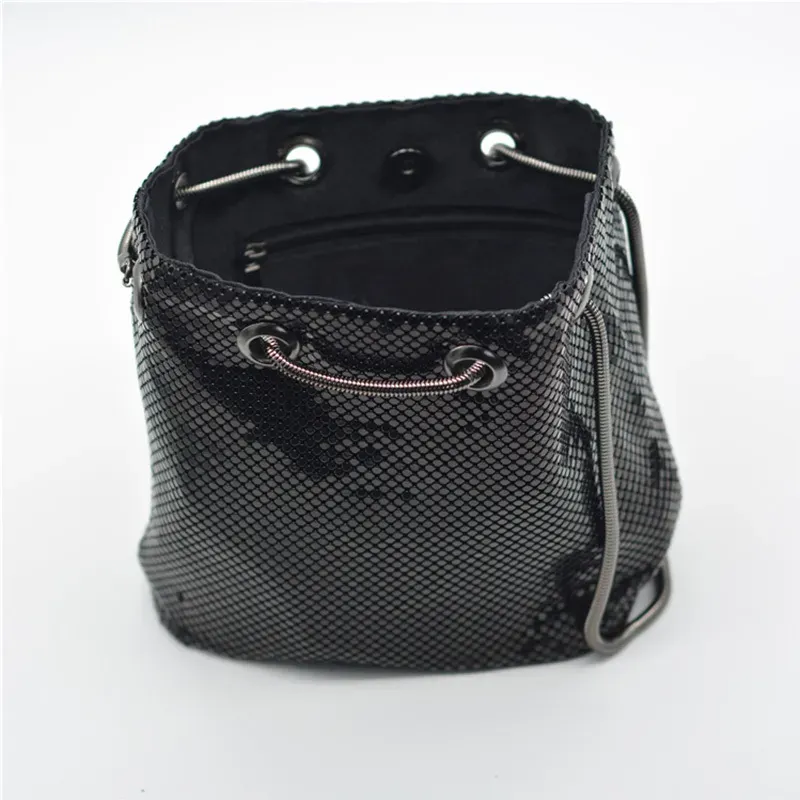 Women Fashion Sparkling Drawstring Design Sequin Decorative Bucket Evening Bag
