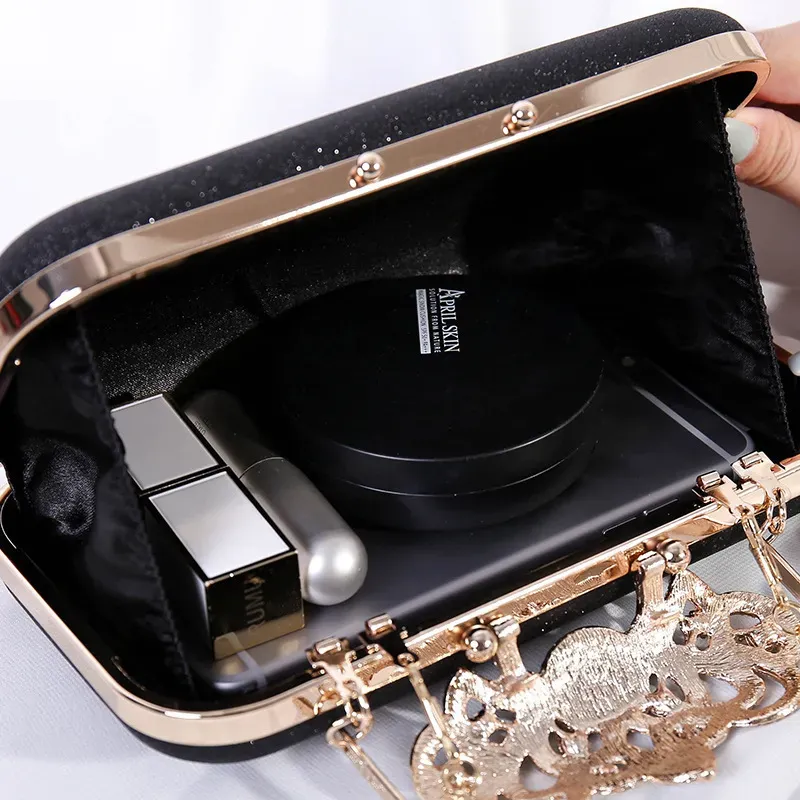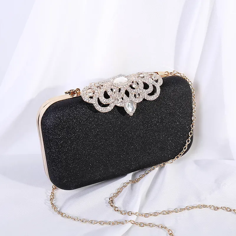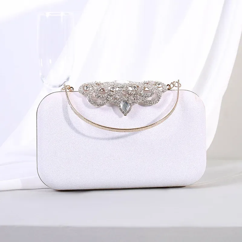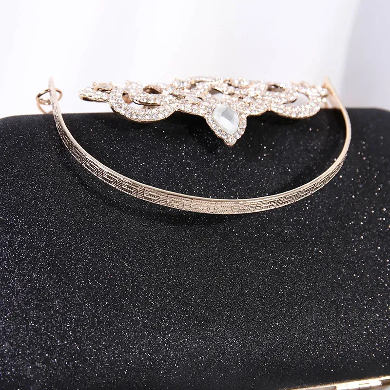 Women Vintage Crown Rhinestone Decorative Buckle Design Evening Bag